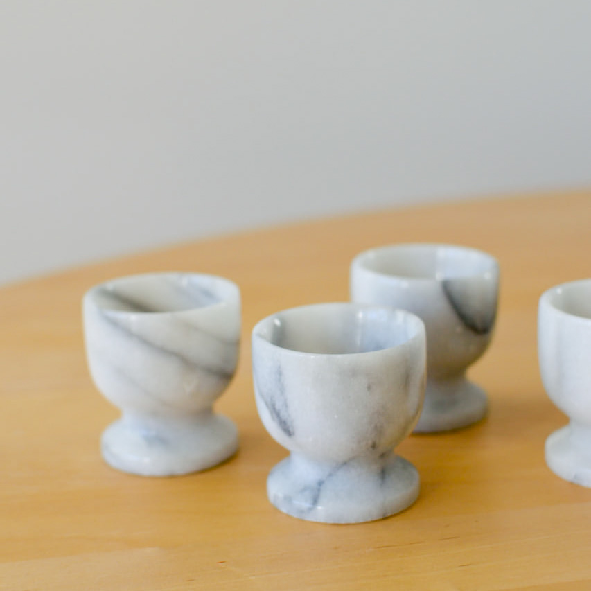 Marmor är ett tidlöst material som inte bara är estetiskt tilltalande utan också praktiskt och hållbart. Dessa äggkoppar passar lika bra till vardags som vid festligare tillfällen och ger din dukning en klassisk och elegant känsla.