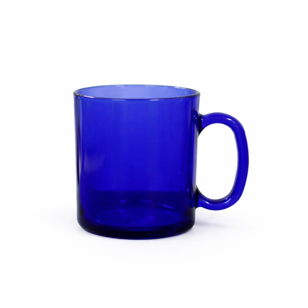 Vackra blå glas-muggar från Arcoroc, kända för sin höga kvalitet och tidlösa formgivning. Dessa muggar är tillverkade i tåligt pressglas i en djup koboltblå färg som ger dem ett elegant och harmoniskt uttryck på bordet.