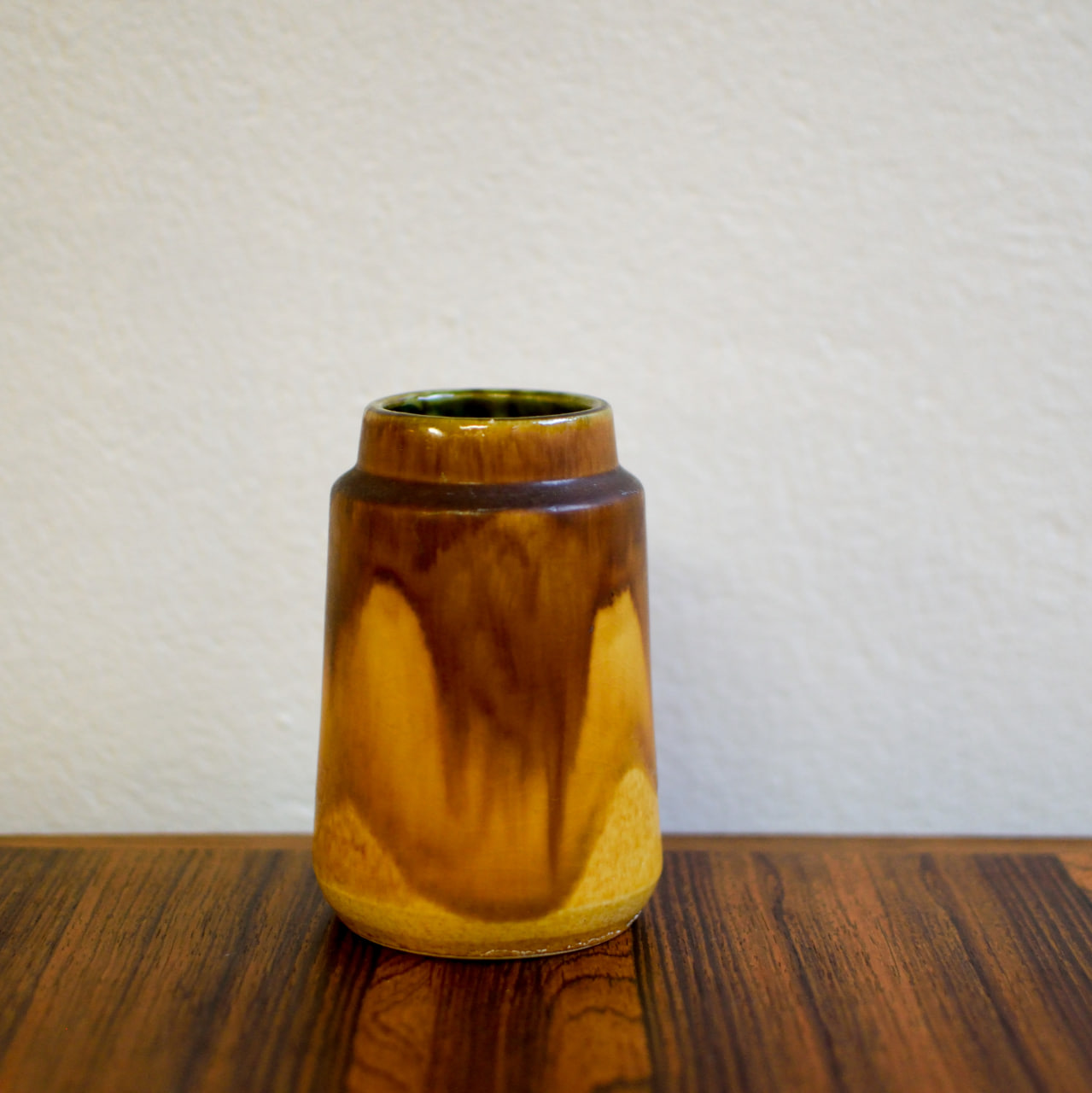 Denna modell är ett typiskt exempel på den varma, jordnära färgpalett som kännetecknar Bay Keramiks produktion under Mid-Century Modern-eran.