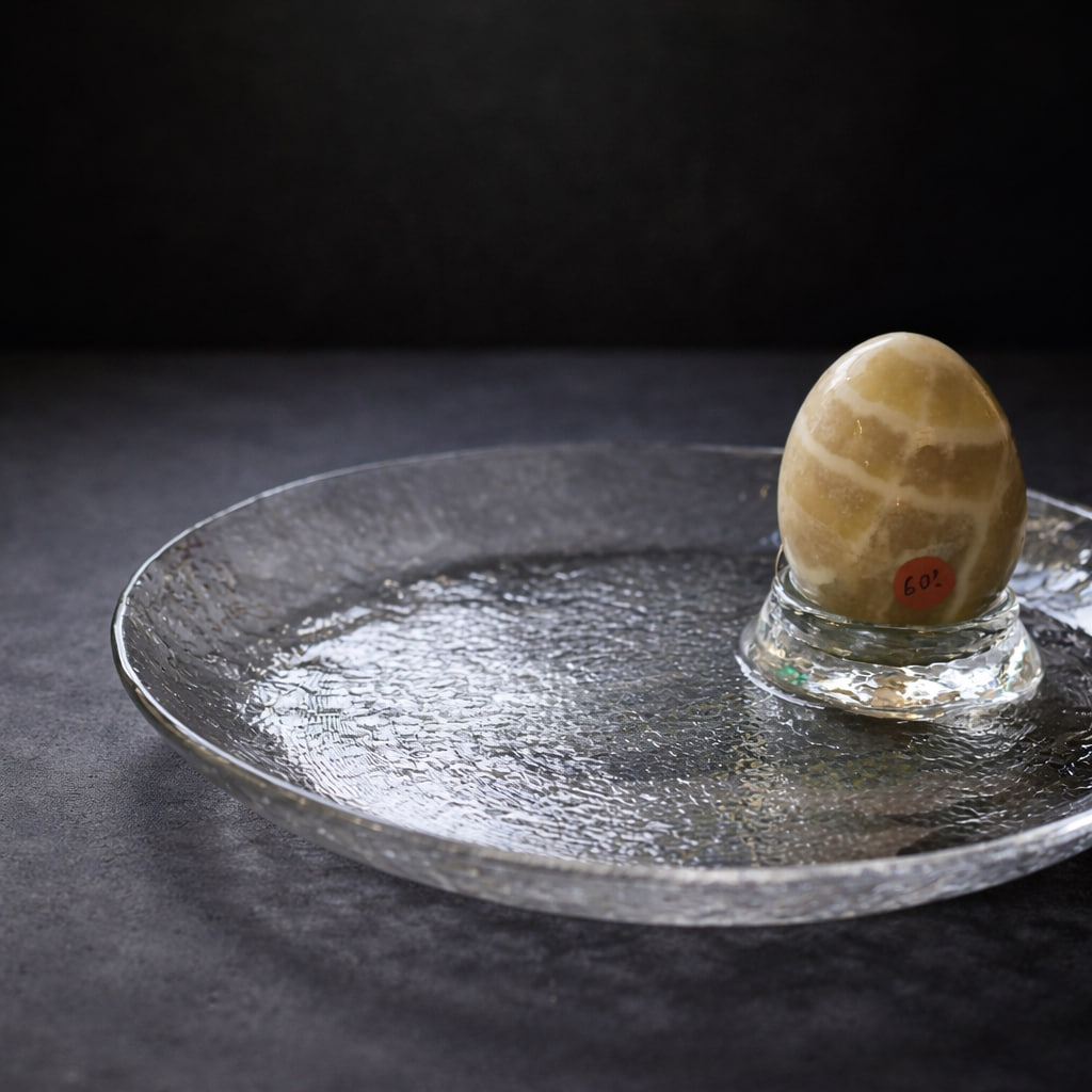Dessa vackra frukosttallrikar i glas är formgivna av Uno Westerberg för Pukebergs glasbruk – en av Sveriges mest välrenommerade glasbruk under 1900-talet. Westerberg, som utbildades vid Konstfack, fann tidigt sin bana inom glasdesign. Hans formspråk kännetecknas av en stram enkelhet kombinerad med tidlös elegans, vilket tydligt framträder i dessa tallrikar.