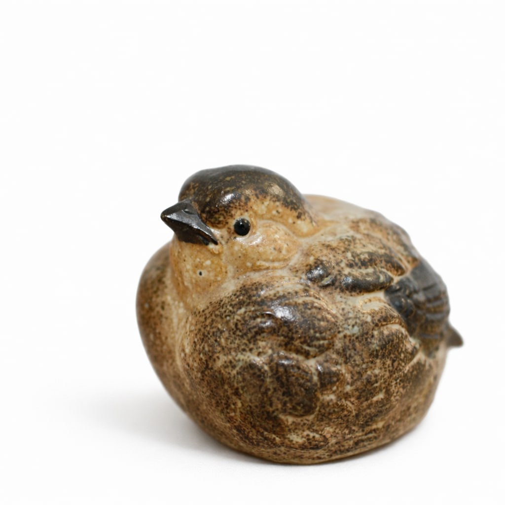 Keramikfågel i stengods från Jie Gantofta, design Erik Engqvist. Varmt brun glasyr med naturtrogen form. Höjd 8,5 cm.