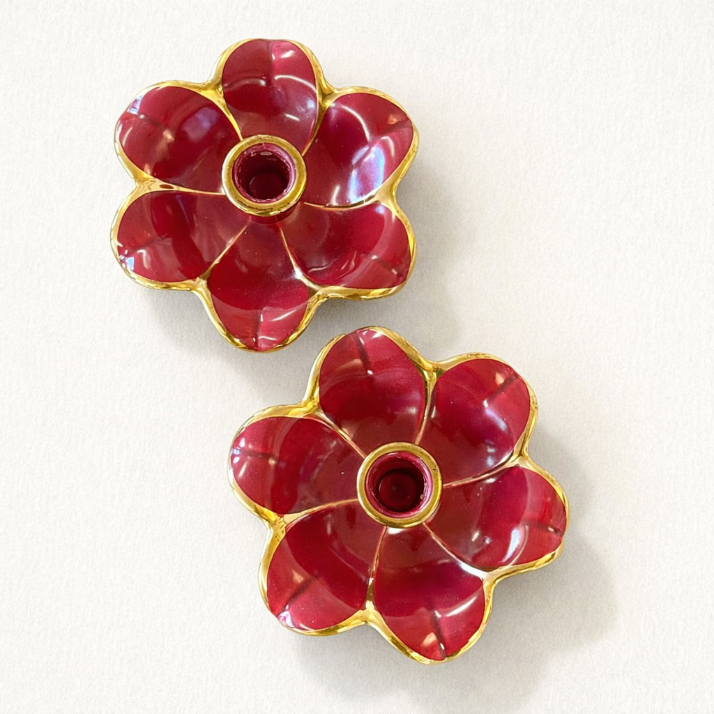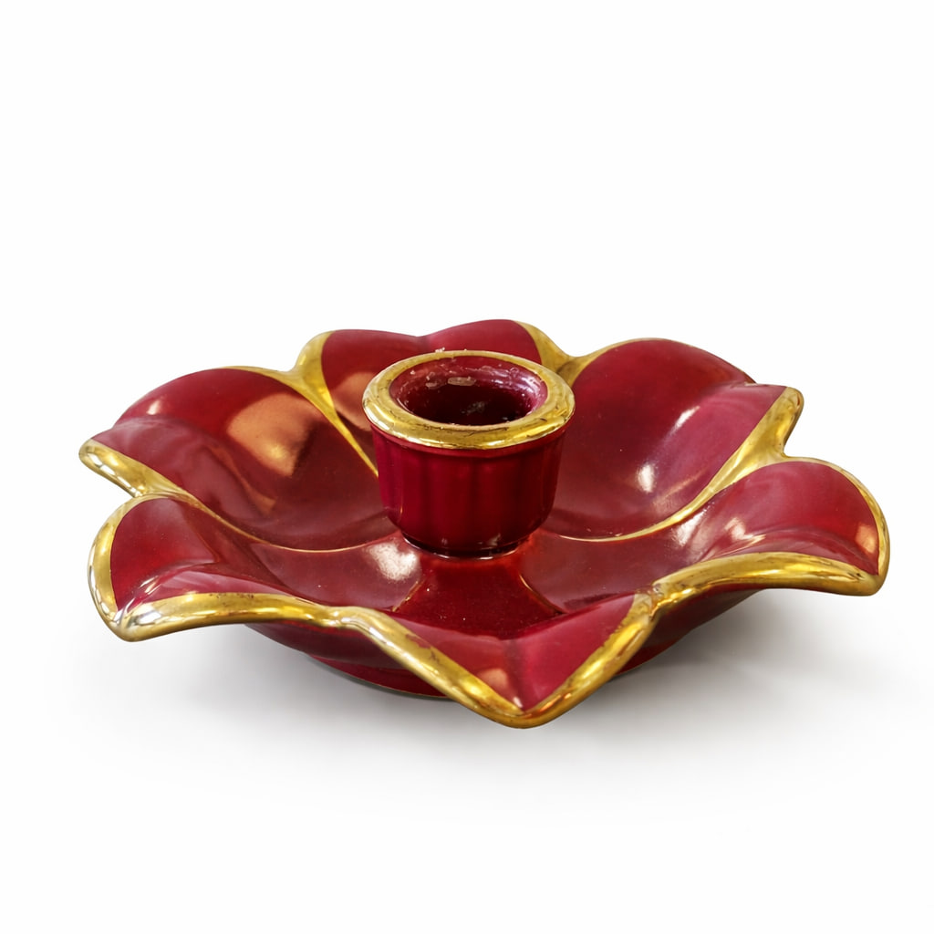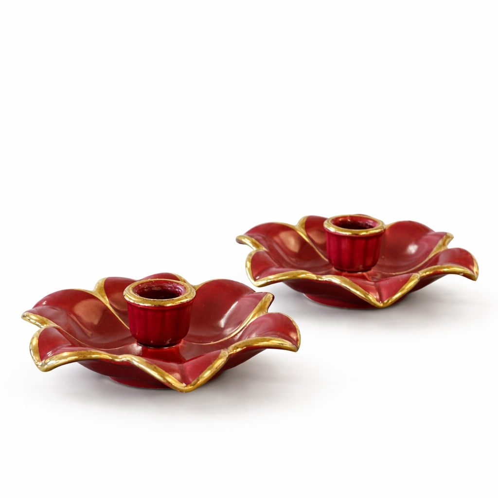 Ett vackert par ljusstakar ur serien “Rubin” från Gefle, kända för sin tidstypiska design och gedigna hantverk. Ljusstakarna har en mjukt rundad form med en harmonisk silhuett som speglar den skandinaviska designtraditionen från mitten av 1900-talet. Den djupa, varma glasyren ger ett levande uttryck och skapar ett fint spel i ljuset från stearinljuset.