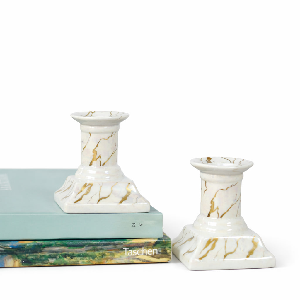 Bli först med att recensera ”Porslinsljusstakar i vitt med marmorerad dekor”