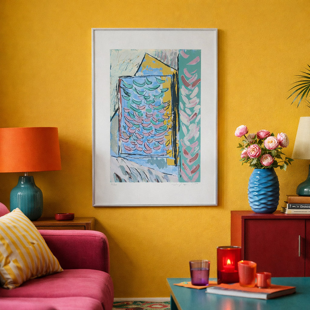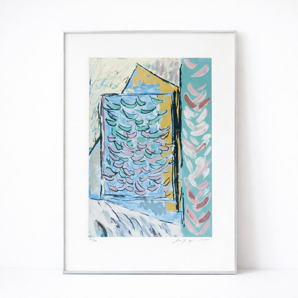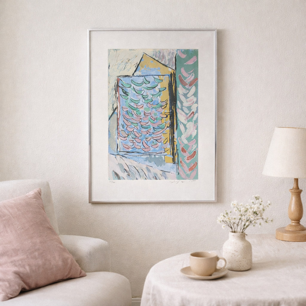 Litografin är signerad och inramad, vilket gör den redo att hängas direkt på väggen. Ett perfekt val för dig som uppskattar modern konst och unika grafiska uttryck.